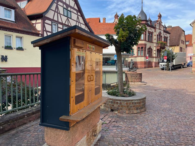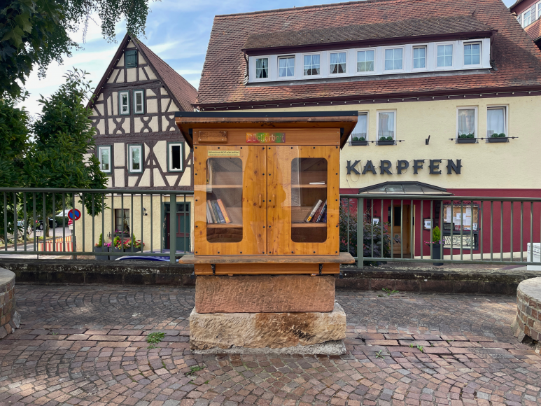 Direkt an der Fußgänger-Mainbrücke in Obernburg am Main steht eine besondere Bücherbox: Sie wird von der Stadtbücherei Obernburg mit Bücherspenden bestückt. Eigene Spenden können daher direkt in der Bücherei abgegeben werden. Ansonsten funktioniert die Bücherbox wie ein klassischer Bücherschrank – Bücher mitnehmen, lesen und zurückbringen. Die charmante, hölzerne Box lädt zum Stöbern ein und verbindet Lesegenuss mit Nachhaltigkeit inmitten der idyllischen Kulisse am Main.
