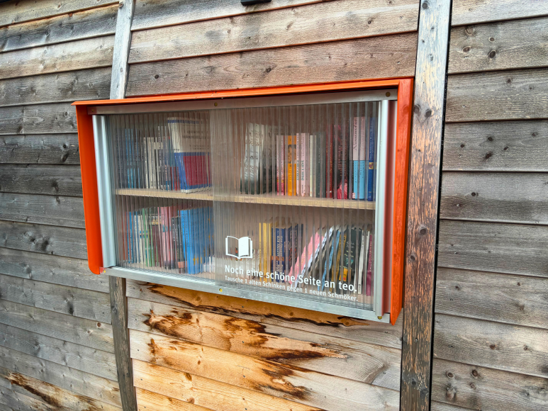 Direkt am teo wurde ein öffentliches Bücherregal angebracht. Unter dem Motto „Noch eine schöne Seite an teo“ lädt es zum Büchertausch ein: „Tausche 1 alten Schinken gegen 1 neuen Schmöker“. Es ist ein unkomplizierter Ort für Leseratten, um neue Geschichten zu entdecken und gelesene Bücher mit anderen zu teilen.