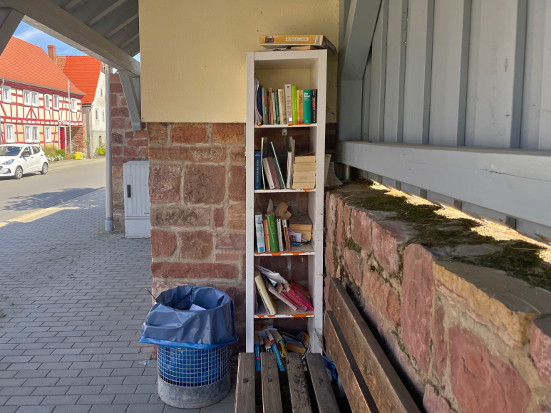 Ein kleines öffentliches Bücherregal steht in Schmachtenberg direkt an der Bushaltestelle. Es ist jederzeit zugänglich und bietet eine hervorragende Möglichkeit, sich die Zeit zu vertreiben, während man auf den Bus wartet. Das Regal lädt dazu ein, Bücher zu nehmen, zu tauschen oder abzugeben, und bereichert so die Wartezeit mit einer Auswahl an Lesestoff.