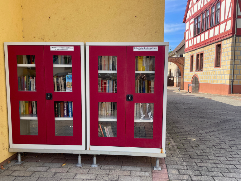In Großheubach, direkt beim Rathaus, befindet sich ein öffentlicher Bücherschrank. Dieser Schrank ist für Kinder und Erwachsene gleichermaßen zugänglich und bietet eine breite Auswahl an Büchern zum Mitnehmen, Tauschen oder Abgeben. Er dient als zentraler Anlaufpunkt für die ganze Gemeinde und fördert den Austausch und die Freude an Literatur.