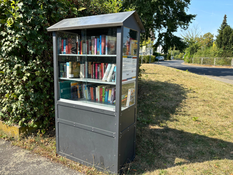Vor dem evangelischen Gemeindezentrum St. Markus in Mainaschaff steht der „Oscheffer“ Bücherschrank – eine solide Metallkonstruktion mit Glascheiben, die sich leicht aufschieben lassen. Initiiert von der Frauen-Union Mainaschaff, lädt dieser für jedermann zugängliche Bücherschrank zum Stöbern, Tauschen und Entdecken ein. Ein wunderbarer Ort, um sich mit neuem Lesestoff zu versorgen oder ein paar Bücher dazulassen und so die Gemeinschaft zu bereichern.