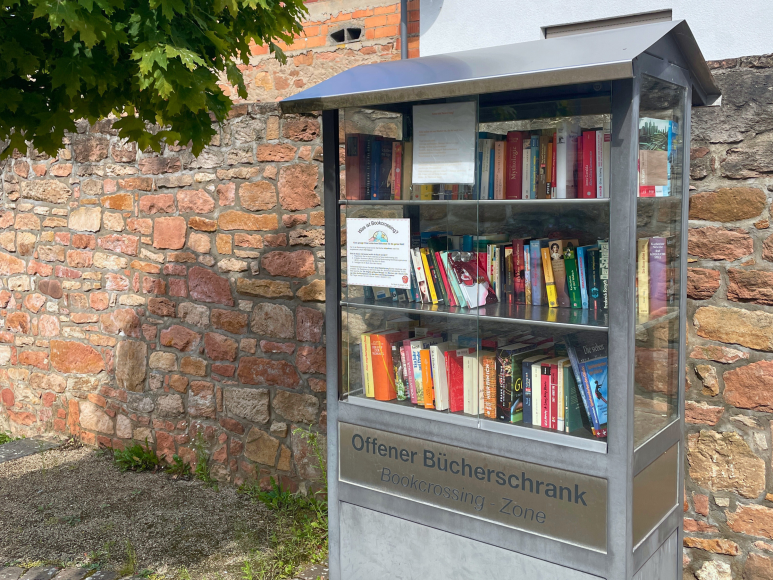In Sulzbach am Main steht ein offener Bücherschrank direkt gegenüber der Kirche und fungiert als BookCrossing-Zone. Dieser einladende Schrank ermöglicht es Besucher:innen, Bücher einzustellen und auszuleihen und die Türen aus Glas lassen Suchende das Buchangebot sofort überblicken. Wenn Du mehr als fünf Bücher auf einmal in den Schrank stellen möchtest, halte bitte vorher mit dem Büro des Bürgermeisters Rücksprache. Zudem können Nutzer:innen ihre Bücher bei BookCrossing registrieren und verfolgen, wie sie ihren Weg um die Welt finden. Ein lebendiger Ort für Büchertausch und spannende literarische Reisen.