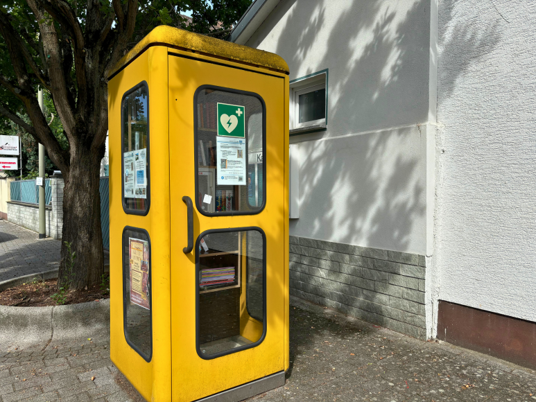 Im Zentrums Großwelzheims wurde eine alte, gelbe Telefonzelle zur Bücherzelle umfunktioniert. Die Zelle, die immer noch ihren ursprünglichen Look bewahrt hat, bietet Bücher zum Tauschen und Mitnehmen an. Zusätzlich beherbergt sie einen leicht zugänglichen Defibrillator, der im Notfall genutzt werden kann. Ein praktischer Treffpunkt für Leseratten und ein wertvoller Beitrag zur Sicherheit in der Gemeinde.
