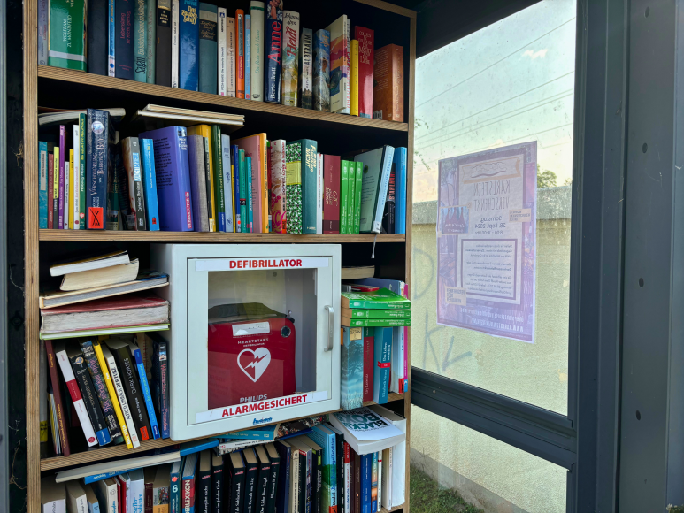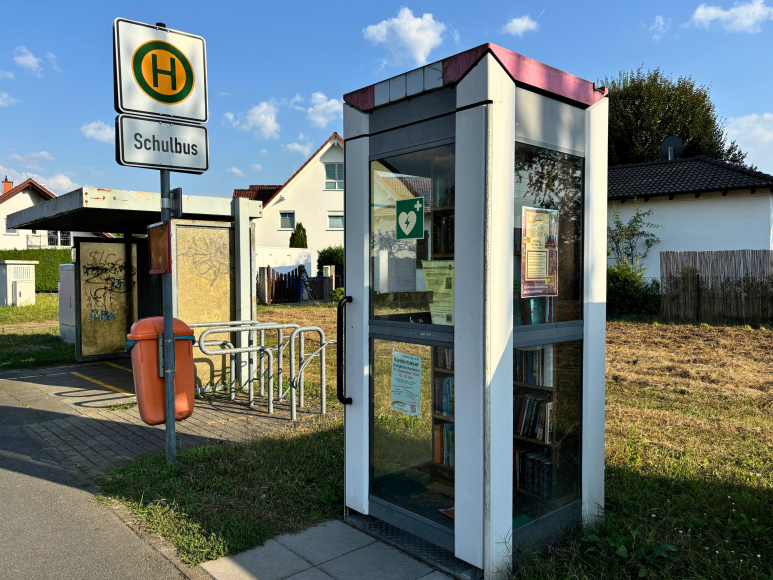 Die Bücherzelle im originalen weiß-pink-grau Look einer alten Telefonzelle bietet kostenlosen Zugang zu Büchern. Sie steht neben der Bushaltestelle Lindigstraße und in der Nähe des Spielplatzes am Haggraben. Auch ein Defibrillator ist hier zu finden. Eine praktische Möglichkeit, um Bücher zu tauschen, Neues zu entdecken und dabei Ressourcen zu schonen.