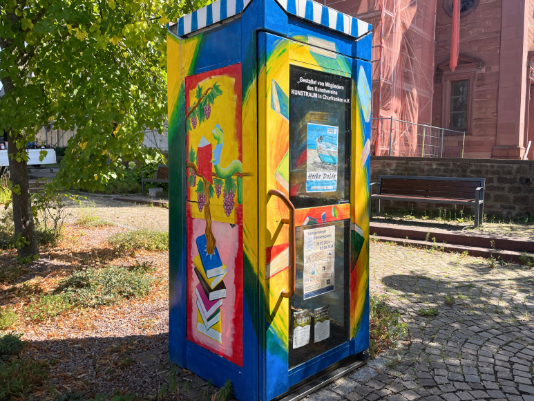 Direkt neben der Kirche in Röllfeld, befindet sich eine bunte öffentliche Bücherzelle, gestaltet von Mitgliedern des Kunstvereins KUNSTRAUM in Churfranken e.V. Neben der Bücherzelle gibt es noch mehrere öffentliche Bücherregale im angrenzenden Häuschen. Diese bieten eine ausgezeichnete Gelegenheit, sich die Zeit zu vertreiben, während man an der Bushaltestelle wartet. Der Ort fördert den literarischen Austausch und bereichert die Wartezeit mit einer vielfältigen Auswahl an Büchern.