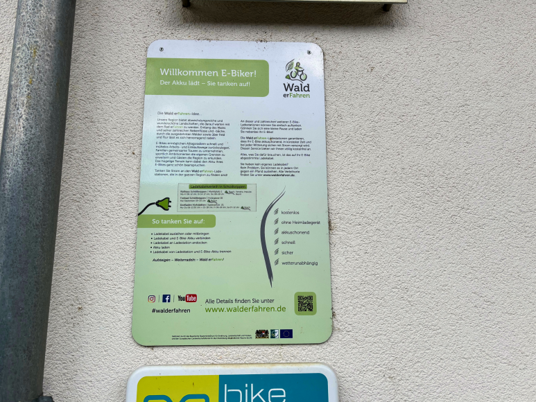 Das Projekt Wald erFahren verbindet über 50 Kommunen des Spessarts mit einem flächendeckenden Netzwerk von über 100 E-Bike-Ladestationen. Diese befinden sich in der Regel an attraktiven und gut erreichbaren Orten – etwa auf zentralen Plätzen oder in der Nähe von Gaststätten und Freizeiteinrichtungen – und sind sowohl für Einheimische als auch für Touristen leicht nutzbar.