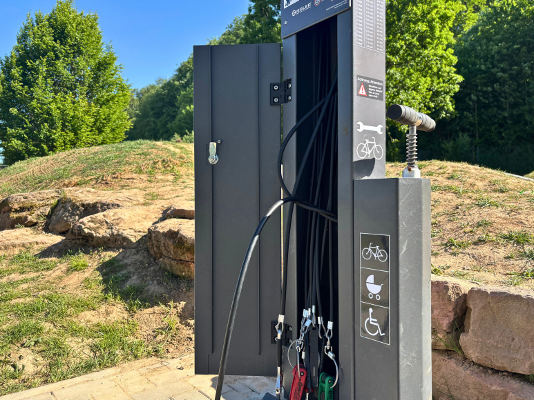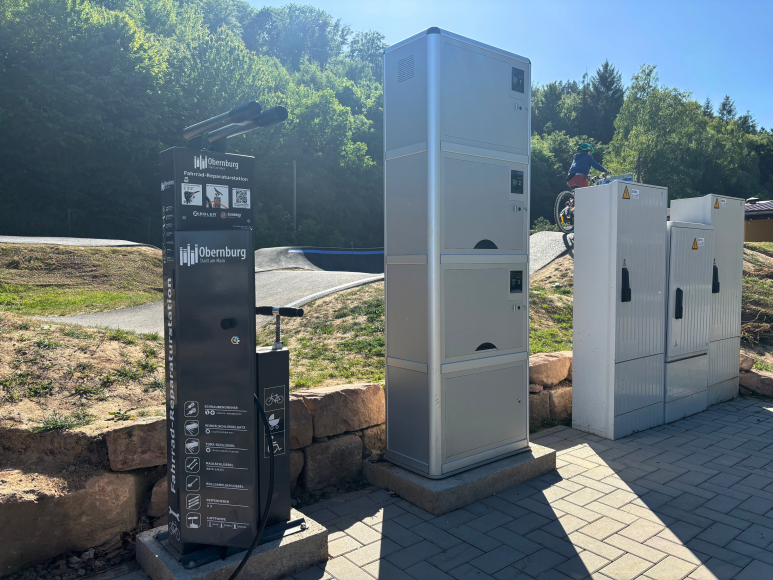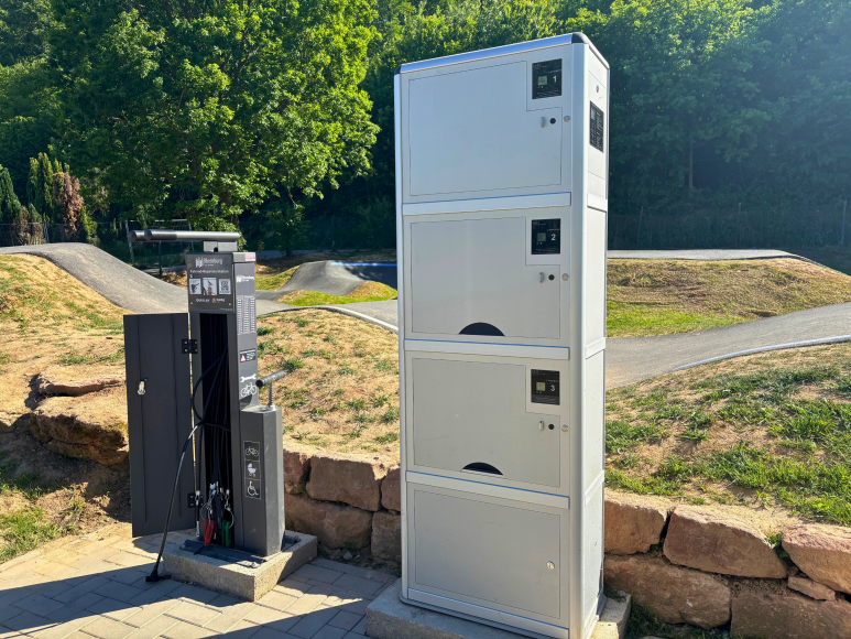 In Eisenbach, direkt bei der Freizeitanlage am Pump Track, befindet sich eine E-Bike Ladestation mit drei Ladeboxen. Ideal für alle, die zum Beispiel während des Ladevorgangs den Pump Track, den Spielplatz oder die Mini-Golf Anlage besuchen möchten. Direkt neben der Ladestation gibt es zudem eine Fahrrad-Reparaturstation. Sie kann auch zur Reparatur von Rollstühlen oder Kinderwägen genutzt werden.