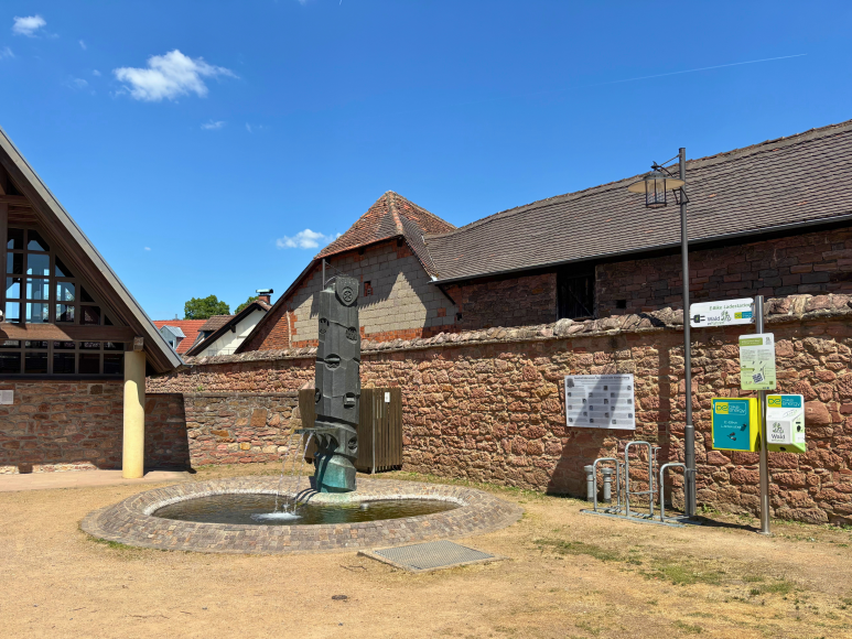 Kleiner Tipp: Ganz in der Nähe der E-Bike Ladestation befindet sich ein Bücherschrank sowie der Dorfrundweg Niedernberg und der Kulturweg Niedernberg – Blechkatzen im Honischland.