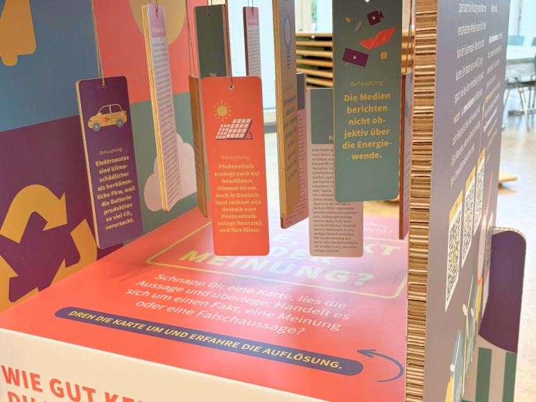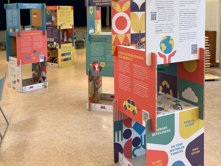 Gemeinsam mit Schüler:innen des Julius-Echter-Gymnasiums (JEG) Elsenfeld haben wir als fabuly eine Wanderausstellung zur Energiewende entwickelt. Sie beleuchtet Chancen und Herausforderungen, hinterfragt Mythen und thematisiert Meinungsbildung, die Rolle der Medien sowie den demokratischen Diskurs.